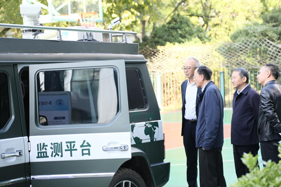 会前,许其功一行参观了星地协同移动走航监测平台、多功能生态走航巡护车、卫星中心宣传展厅、无人机实验室及数据机房,详细了解了卫星中心在生态环境遥感监测、数据获取与应用服务等方面的能力建设情况。