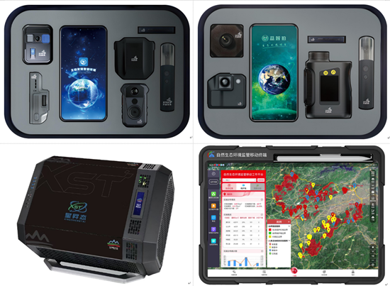 在生态保护修复综合监管方面,重点展示了“美丽山水”移动智能终端设备,该设备利用移动GIS和北斗通信导航等技术,兼具数据服务、应用服务、预警服务于一体的综合业务能力,实现国省市县多层级生态监管信息共享接口通道,提供“零门槛、高效率、掌上办、随时办”业务决策支撑。
