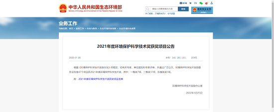 近日,生态环境部公布了2021年度环境保护科学技术奖获奖项目。