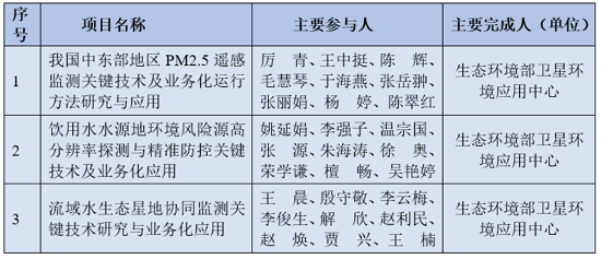 卫星中心申报的我国中东部地区PM2.5遥感监测关键技术及业务化运行方法研究与应用、饮用水水源地环境风险源高分辨探测与精准防控关键技术及业务化应用和流域水生态星地协同监测关键技术研究与业务化应用等3个科技项目均荣获了2021年度环境保护科学技术奖二等奖。