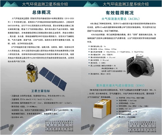 大气环境监测卫星是《国家民用空间基础设施中长期发展规划(2015-2025年)》中的一颗科研卫星,该卫星于2022年4月16日成功发射,运行于太阳同步轨道,轨道高度705公里,设计寿命8年。卫星主要搭载大气探测激光雷达、高精度偏振扫描仪、多角度偏振成像仪、紫外高光谱大气成分探测仪及宽幅成像光谱仪5台载荷,首次实现了全球全天时高精度二氧化碳柱浓度探测,通过主动激光与被动高光谱、多光谱、偏振等手段结合,实现细颗粒物立体探测,以及气态污染物、云和气溶胶等探测要素大范围、连续、动态综合监测,同时可服务于水环境和自然生态环境、气象和农业农村领域监测。