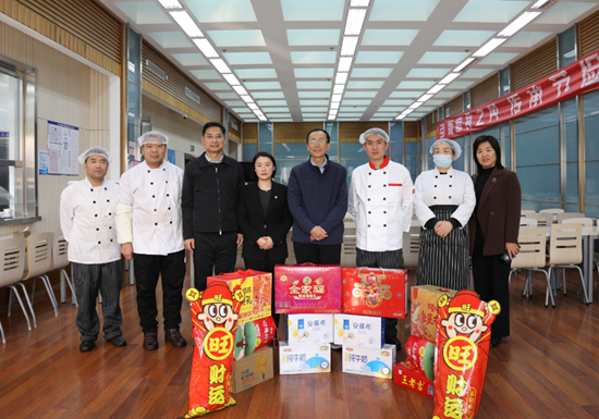 2025年1月22日下午,在春节来临之际,卫星中心党委书记、主任吴季友和纪委书记李华友带领办公室相关人员,慰问了物业和餐厅后勤服务人员,向他们致以新春诚挚的问候并送去了慰问品。
