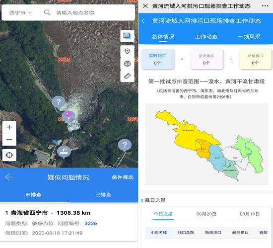 (左图,排查靶向目标与排口精准定位;右图,黄河流域排污口现场排查工作动态)