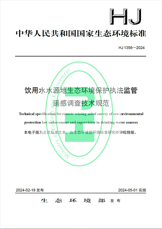 近日,生态环境部发布了国家生态环境标准《饮用水水源地生态环境保护执法监管遥感调查技术规范》(HJ1356—2024),规定了利用卫星、无人机等遥感技术对饮用水水源地生态环境保护执法监管遥感调查的工作流程、数据准备、遥感解译、线索筛查、线索生成、成果归档等相关要求。