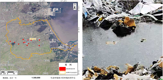 (农村疑似黑臭水体空间分布图) (农村黑臭水体现场照片)