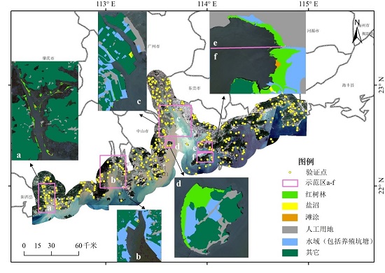 红树林多分布于地势开阔平坦的潮间带浅滩,实地调查方法难以进行,而遥感技术的优势使其成为红树林监测的高效手段。卫星中心水生态环境遥感部联合中山大学、中国科学院空天信息创新研究院、英国国家海洋中心、荷兰皇家海洋研究所等国内外科研单位基于Landsat TM/ETM+、Sentinel-2、国产CBERS和HJ-1等多源遥感数据,利用机器识别、目视解译与野外调研相结合的方法,获取了粤港澳大湾区河口红树林2018年的分布现状,对1990-2018年红树林分布的动态变化进行了分析,并对新增红树林中的人工造林和天然林进行识别。监测结果表明:大湾区河口红树林面积自1990年以来呈现先减小后增加趋势,早期由于土地无序开发如养殖坑塘及人工用地占用导致红树林面积减少,后期部分地区采取保护和修复措施增加了河口红树林面积。但是,粤港澳大湾区新增河口红树林中,外来种构成的人工林比例过高,其中淇澳岛、黄茅海等地外来种人工林占比均高于95%。