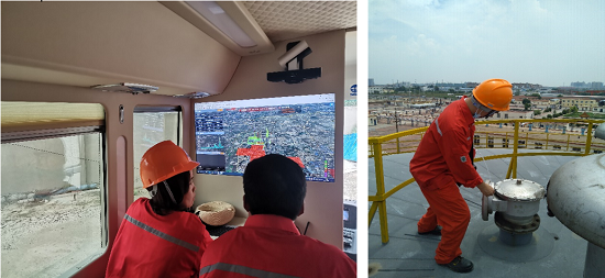 图2 卫星中心技术人员在油田联合站开展驻点监测并与油田工作人员现场交流