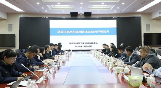 2025年11月3日下午,蒙古国高级别代表团到访生态环境部卫星环境应用中心(简称卫星中心),生态环境部国际合作司、亚洲开发银行有关同志陪同参加,卫星中心党委书记、主任吴季友,副主任翟轶军、首席科学家高吉喜接待。